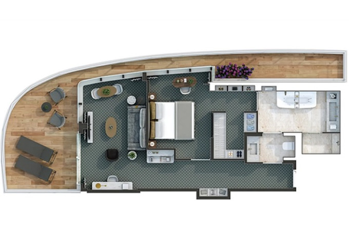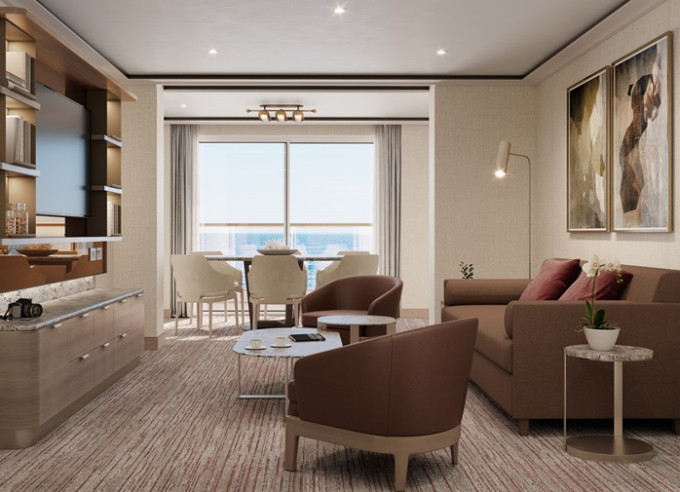 | O2 - Owner's 2 Suite 131 m² (vrátane balkóna 16 m²). 2 spálne, oddelená obývacia a jedálenská časť, kúpeľňa s vírivkou. Owners Suite O2 spojená s Premium Veranda Suite. 8. paluba - stred. Max 5 osôb. | 64 400 € 64 400 € za osobu |
