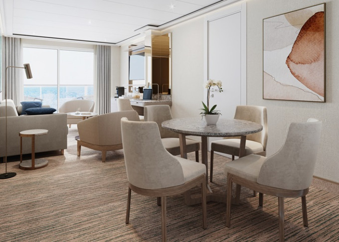 | SL - Silver Suite 1 spálňa 63 m² - 2 spálne 96 m² (vrátane balkóna 11-16 m²). 1 alebo 2 spálne, oddelená obývacia a jedálenská časť, kúpeľňa s vírivkou. 6,7,8. paluba, | 33 000 € 33 000 € za osobu | ||